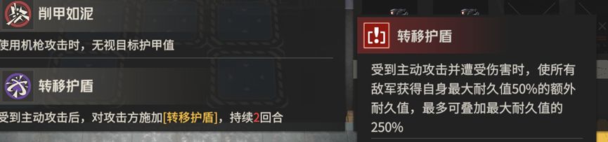 第二个成就要求敌方未获得护盾强化效果,这里需要对了解它的护盾机制,通俗地讲,就是一旦我方攻击boss,就会获得一个debuff,然后我方拥有debuff的人员被敌人主动攻击到,所有敌人就会获得护盾。所以我们确保拥有此debuff的人员不被敌方攻击即可完成成就