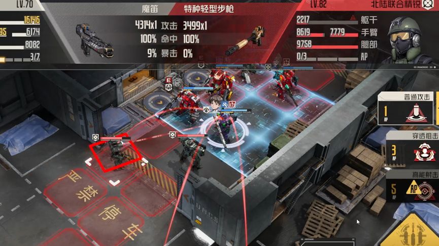 第二回合开始就是消灭杂兵了,这里的选择其实打法就有比较多的选择了,这里可以让罗娜加一动给碇真嗣,然后三枪收下左边轻狙兵