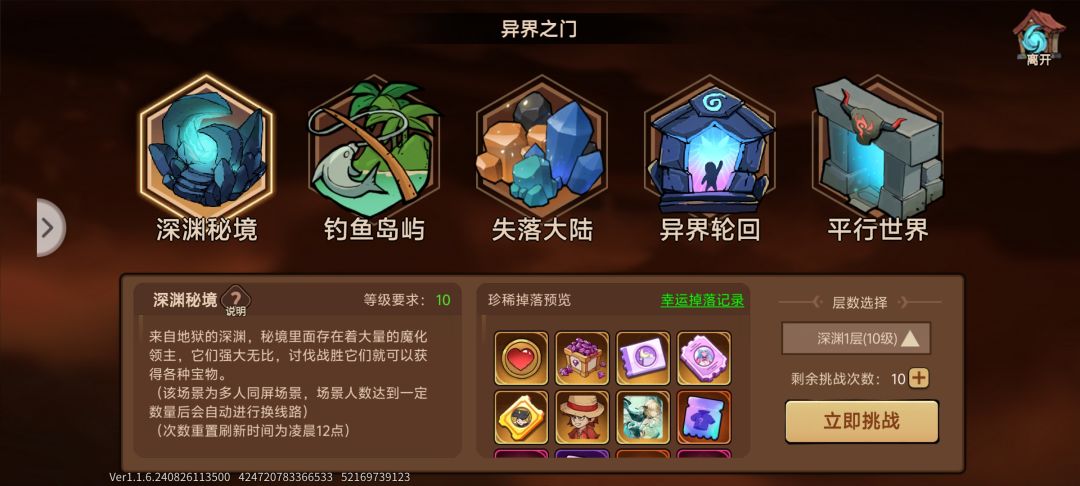 接下来就可以进入深渊秘境,打龙,打出属于自己的金闪闪了,记得药水买一些哦,然后设置里可以把自动回血压到20%,因为火系天赋像我那样点的话,30%血以下是有伤害加成的,20%然后吃药回血也不到30%,可以一直吃到加成。