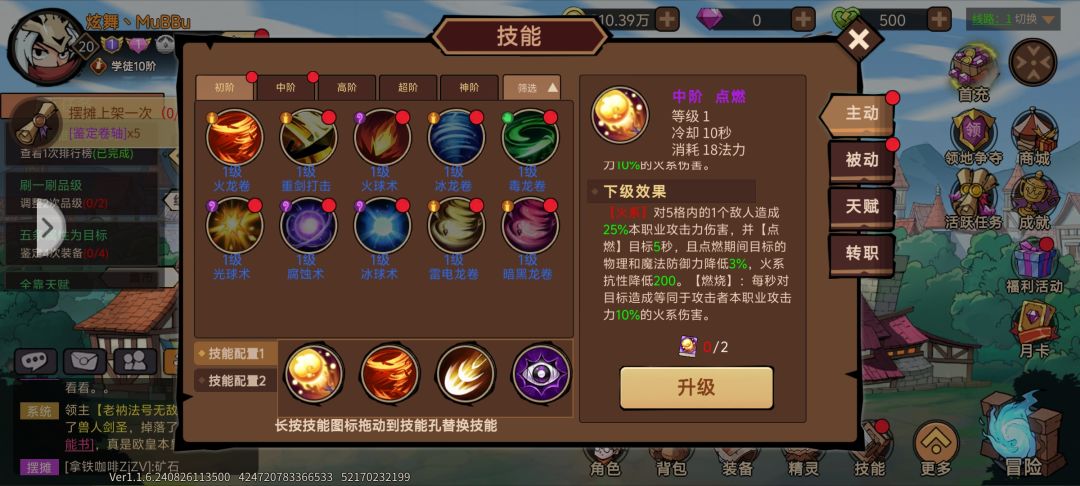 然后就是技能,技能这个东西玩什么流派的都有,但是前期比较建议玩火的技能,如图,比较需要注意的就是后期基本上都是要玩光系的,所以新区的技能天打五雷轰,还有光能爆破会比较贵,我们需要注意的还有心眼技能书还有猛男的诱惑,这都是需要点满了的,还有光系和无系的被动技能书,都是值些钻石的