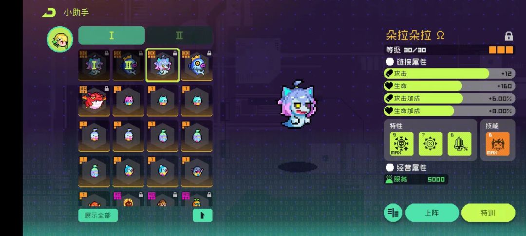 另一个宠物一般选择朵拉或者咸鱼王,朵拉如果凑出毒二可以快速骇入,咸鱼王打boss时有冰属性易伤,但记得希尔要取消自动攻击然后点按,要不然无法触发咸鱼王。