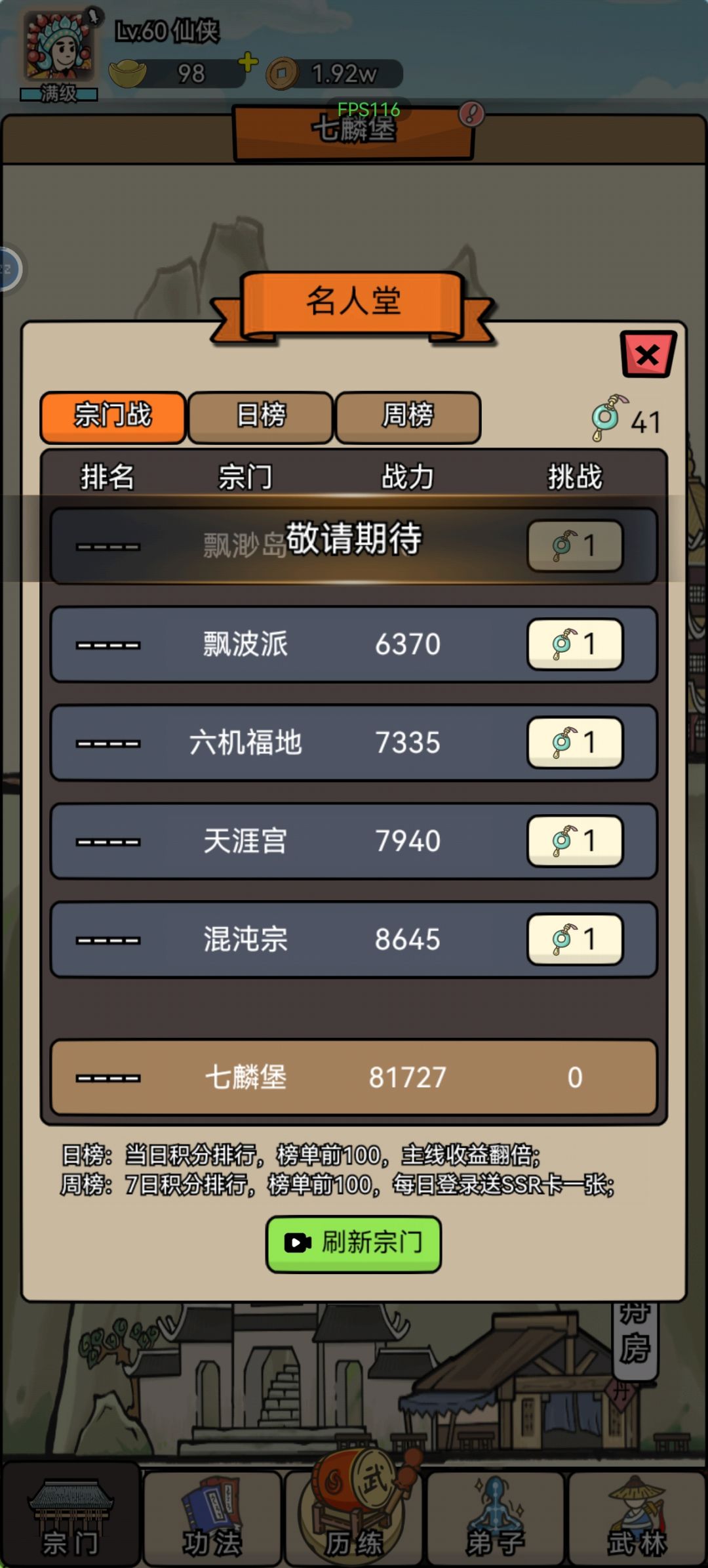 二是名人堂没开。就是排行榜,看着有激励,还要看广告,结果,是请期待。