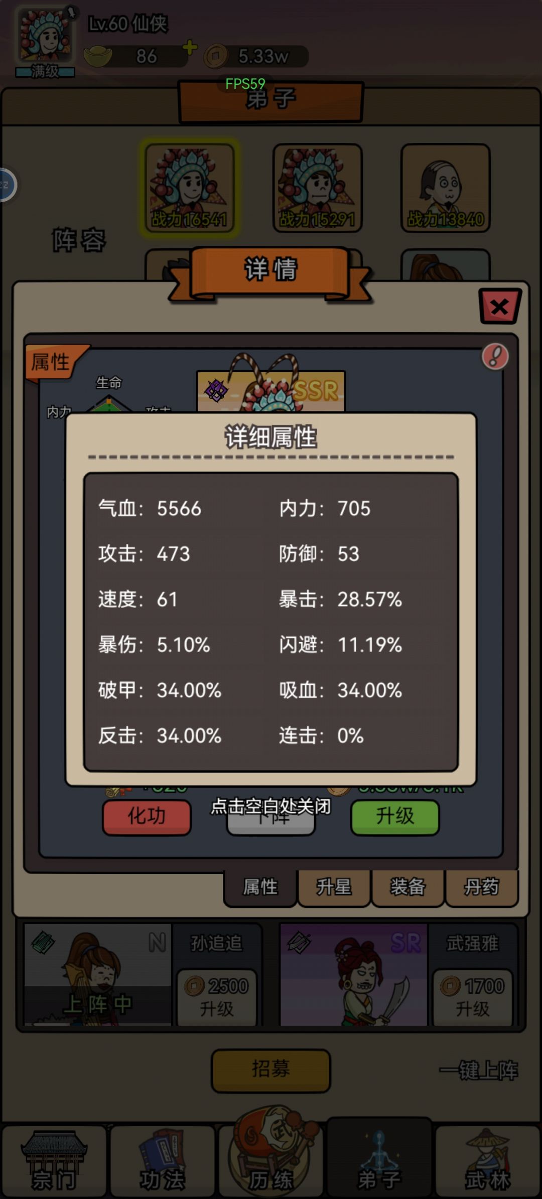一是弟子最多到橙色,红色没开,刷了100次5万多铜钱都没出。写的16.6的几率。