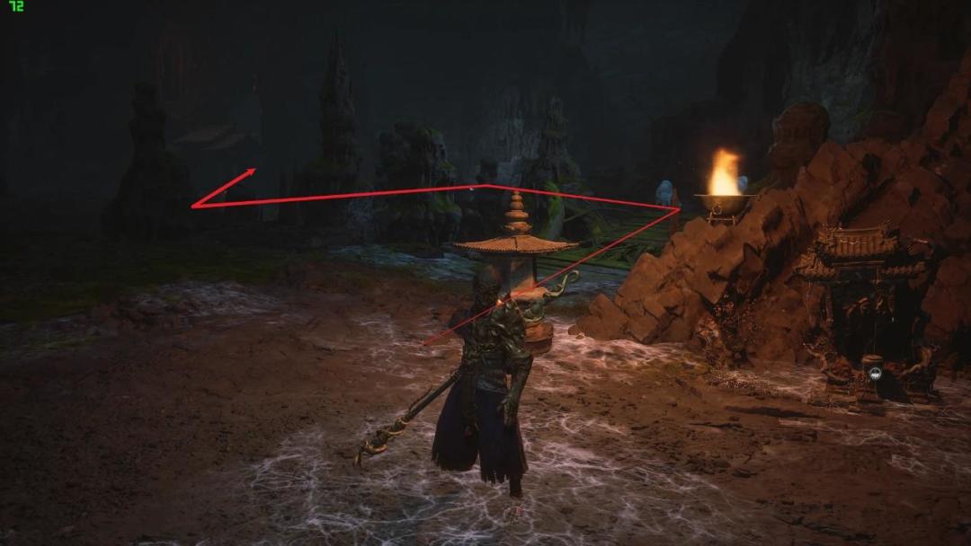 传送到「盘丝岭—盘丝洞—花间桥」,然后从左侧道路一直往前