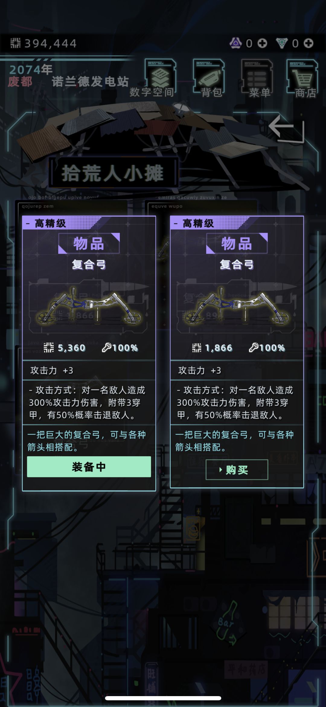 商业中心:进去直接冲上第四层 然后一直搜索 背包满了不用怕 装不下的就丢弃 探索完了之后就可以到垃圾场的小摊中购买 比如一个复合弓原价五千多 小摊半价甚至更少 然后你再卖出去 就可以小小赚前期的钱了
