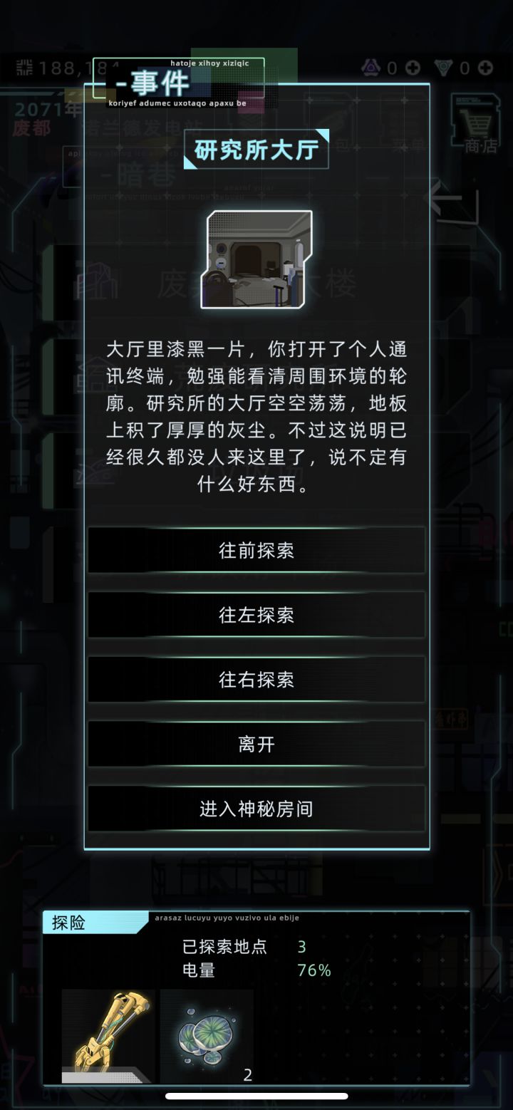 研究所:进去后先点往右探索 知道面板出现一句“一个神秘的门”就可以点回到大厅 点神秘房间 开始解密 解密题目你只要记住属于废都的 和不属于废都的城市就好了