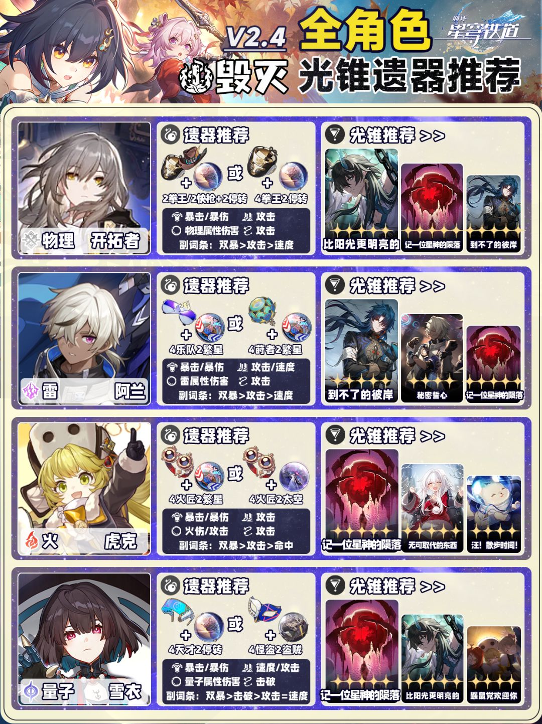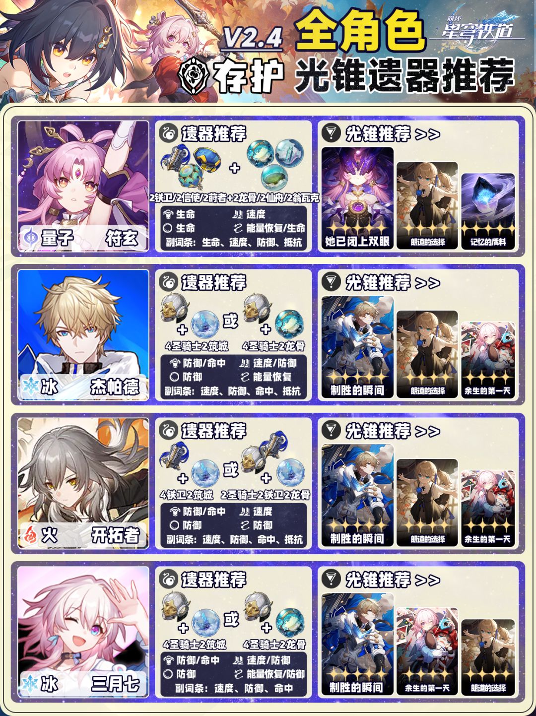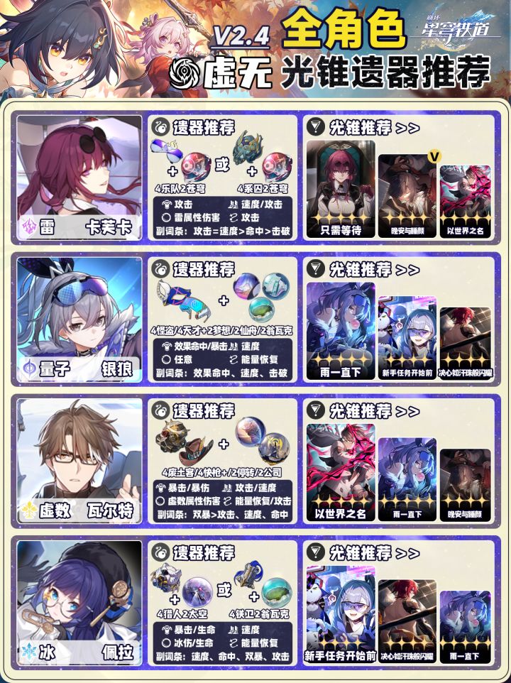 星铁2.4【全角色】光锥遗器选择❗