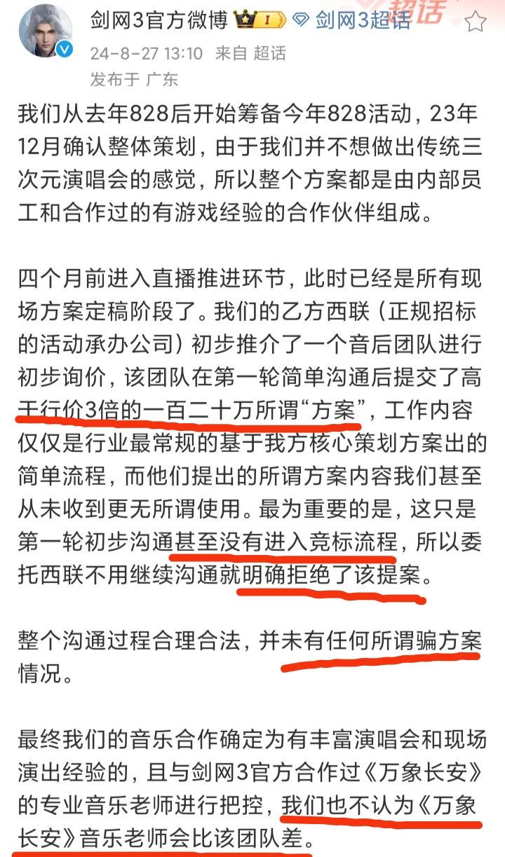 8/27号上午10点,邹X樱发文控诉《剑网3》骗方案,中午《剑网3》官方舍弃午休时间回应了该事件❗❗❗