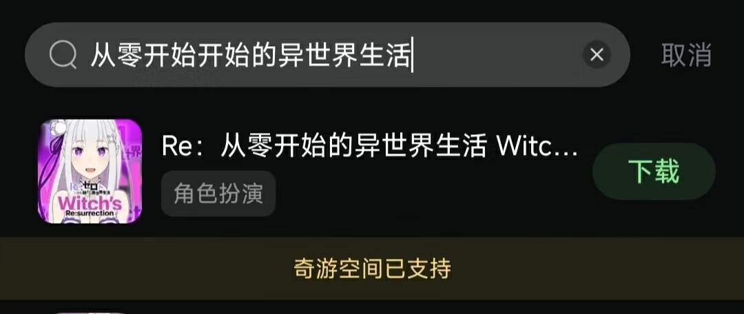 第二步:在奇游内搜索【昊从零开始的异世界生活】即可下载游戏(如果提示游戏未安装,则说明奇游非官网版本哦~)