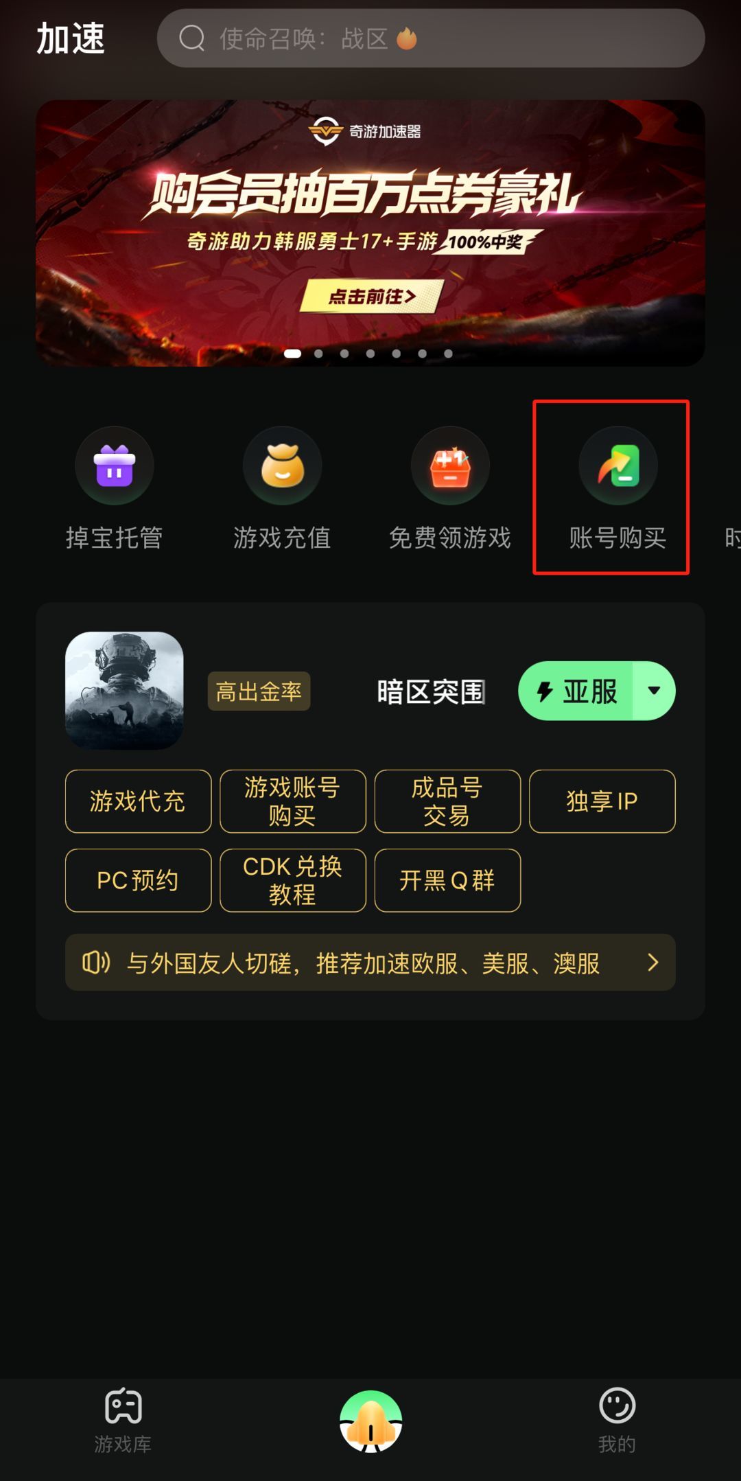 第一步:在TapTap内搜索【奇游手游加速器}下载并安装