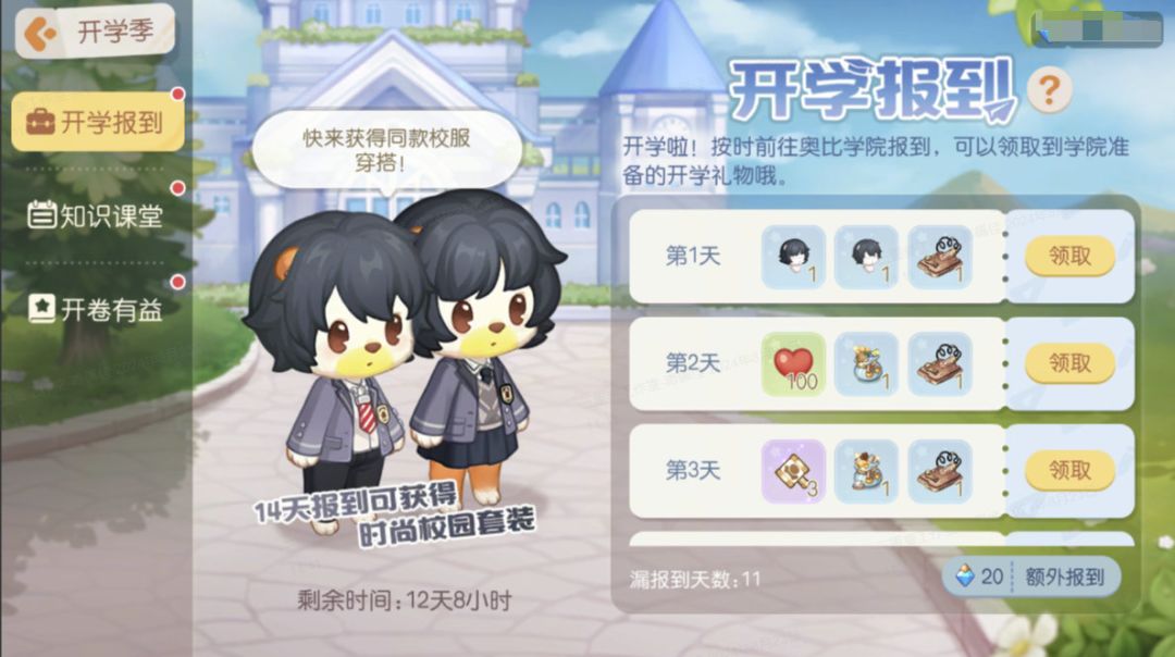 活动时间:8月29日5:00-9月18日23:59活动介绍:对优秀的小熊学生们来说,完成作业自然不在话下。快来完成作业,领取能够代表优秀学生身份的「学院徽章」吧!
