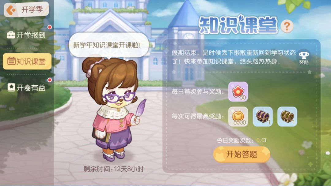 2. 知识课堂活动时间:8月29日5:00-9月18日23:59活动介绍:新学期来了,旧知识还记得吗?快来参加开学复习课堂,重温一下知识吧。