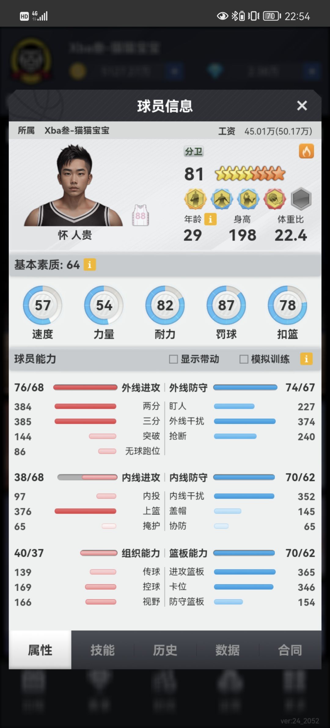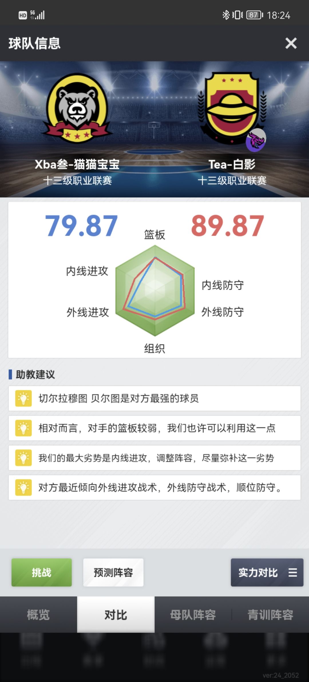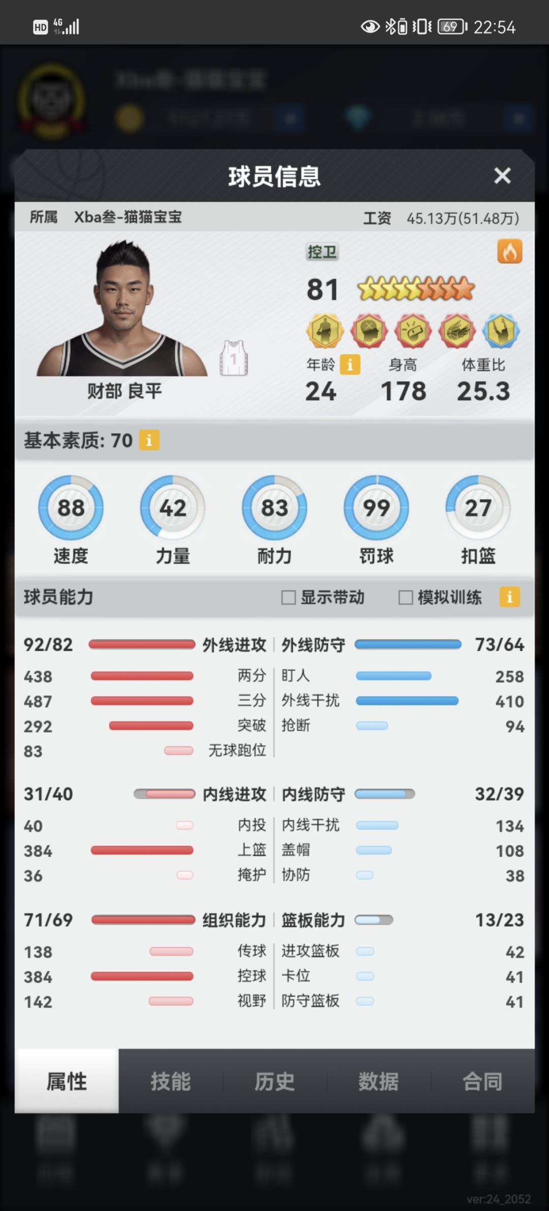 临近三个赛季买了4个年轻中联球员,跌跌撞撞靠征兆从11联到了13联,无青训收入,全靠主队破烂商业,资金周转和训练位置均是捉襟见肘,用最差的游戏条件进行炼狱般、自虐式的运营。本赛季没想到常规赛第四,季后赛又黑四,意料之外又情理之中的晋级14联了。