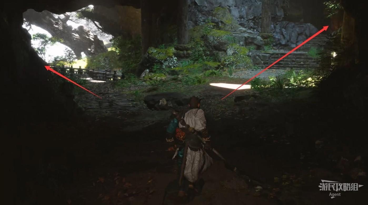 经过山洞后,先去左边有个【打坐蒲团】,然后再回来走右边。