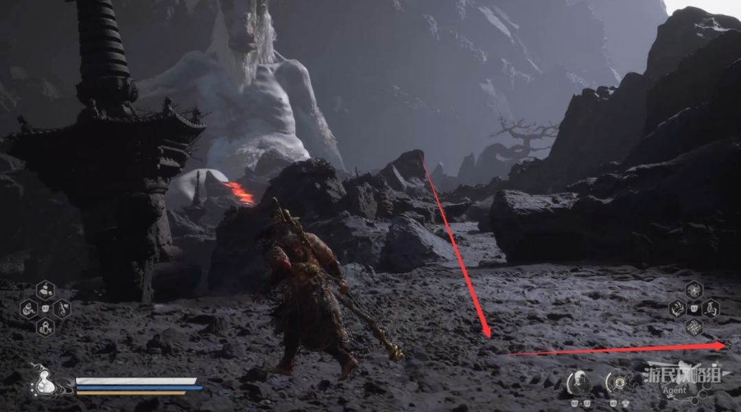 七返火丹从“陨砖坑”土地庙往回走,找到被火挡住的路,用芭蕉扇灭火,走这条隐藏的路前往隐藏关卡。