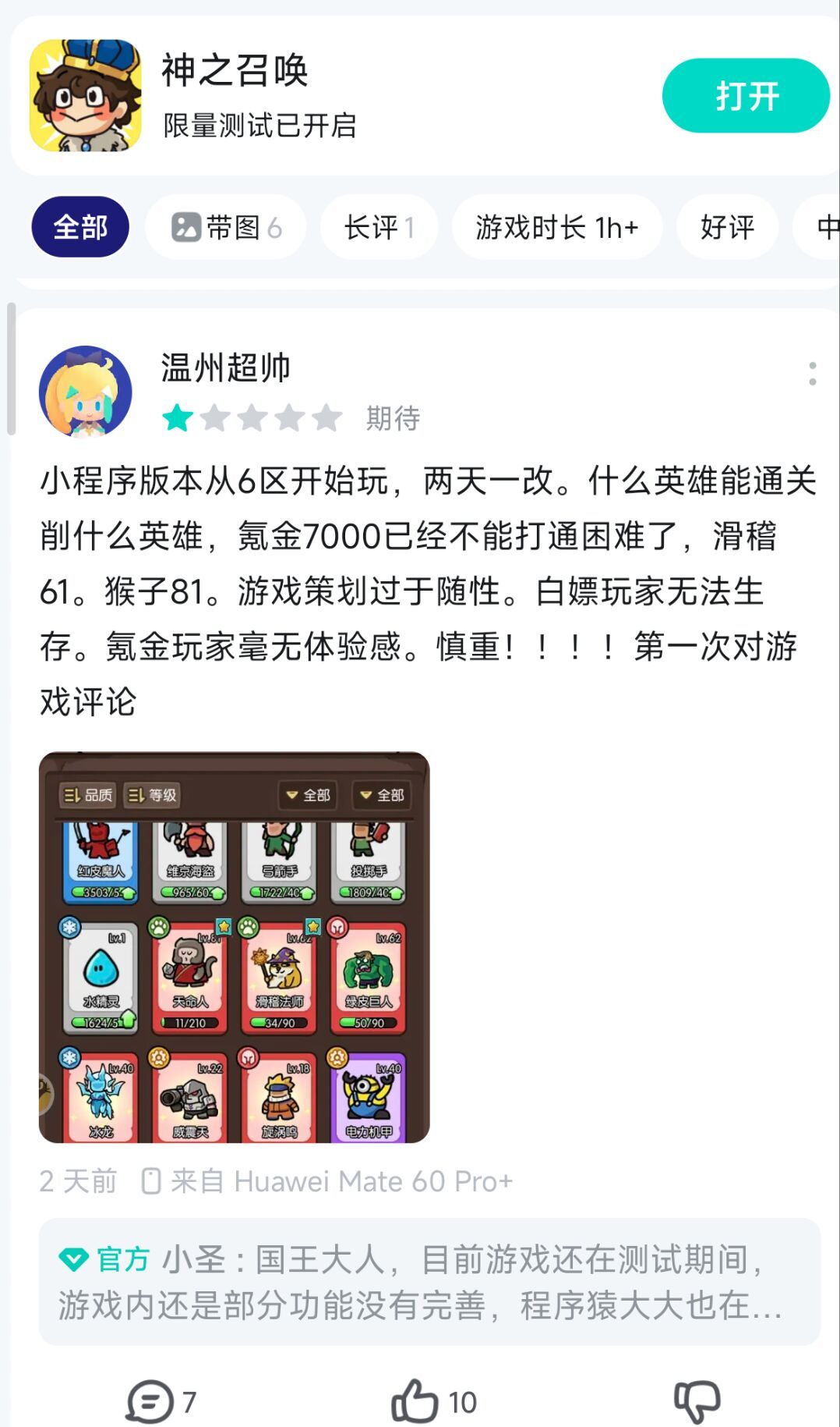 没什么好说的,就是氪金还有氪金,这游戏就是凭运气玩的,当然了,风之力游戏是一个好厂商。做出来神刷、重生还有神之召唤这种好游戏,在这里我给风之力一个五星好评,让我知道了社会的险恶,不敢再往广告小游戏里氪金。