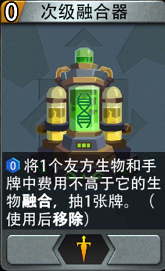 (0费)将1个友方生物和手牌中费用不高于它的生物融合,抽1张牌。(使用后移除)