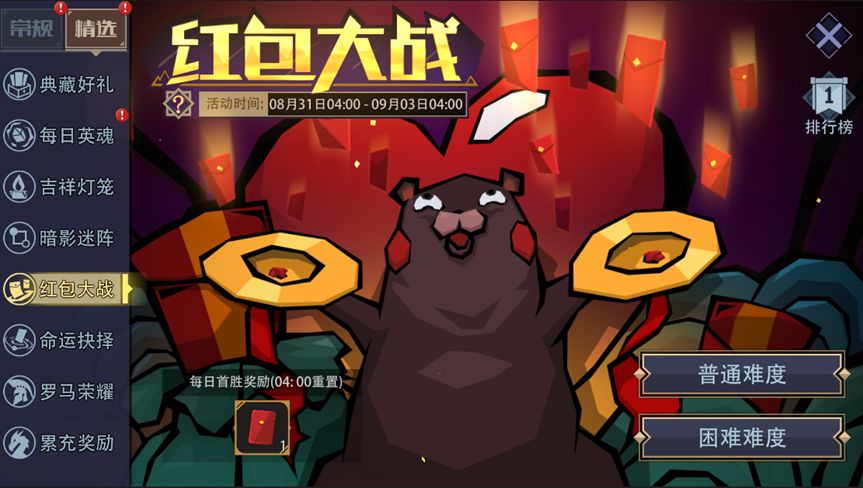 活动内容:天降红包啦!指挥玩偶去接取,看看你能获得多少分。游戏分为普通、困难两种难度,无论哪种难度下进行游戏,只要每日首次胜利即可获得“节日红包”;打开红包可随机获得魔晶x66、魔晶x88、魔晶x99(祝您一帆风顺、恭喜发财、天长地久)。首胜奖励及排行榜,次日04:00刷新。