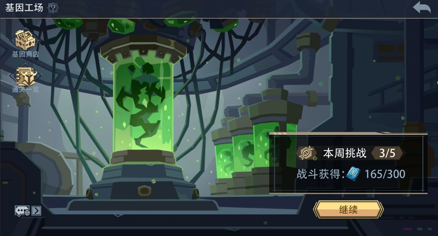 2、共有6个关卡可以挑战,战斗胜利时会获得[基因芯片](1~4关为10枚,5~6关为20枚),每周上限为300枚;