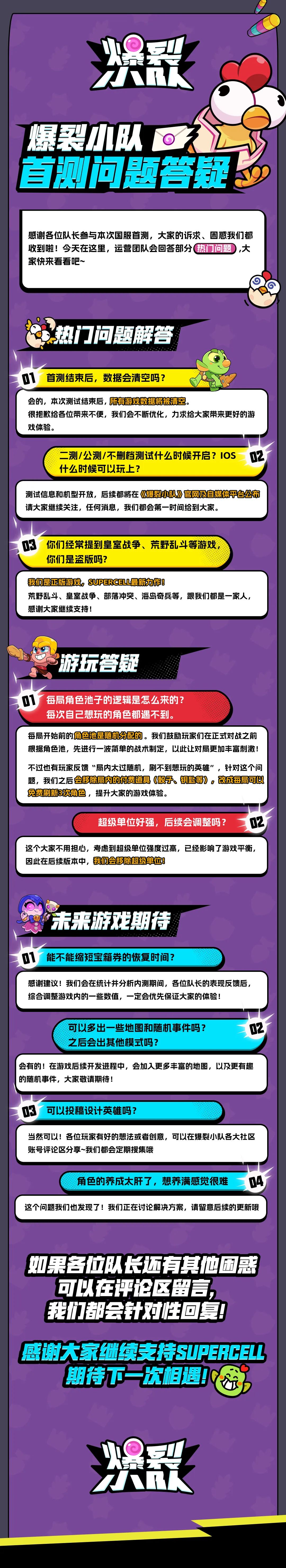 测试期间我们收到了非常非常多宝贵的反馈建议,这些建议汇聚了大家对《爆裂小队》的关心与期待,我们深感荣幸并感激不已。