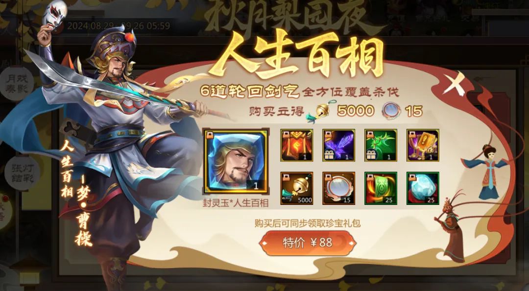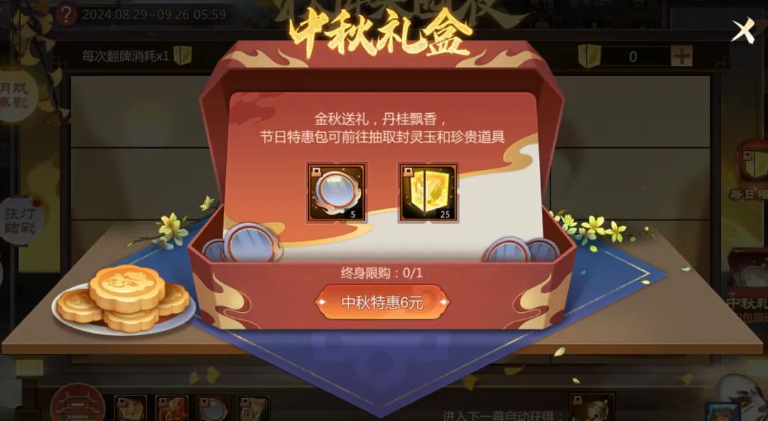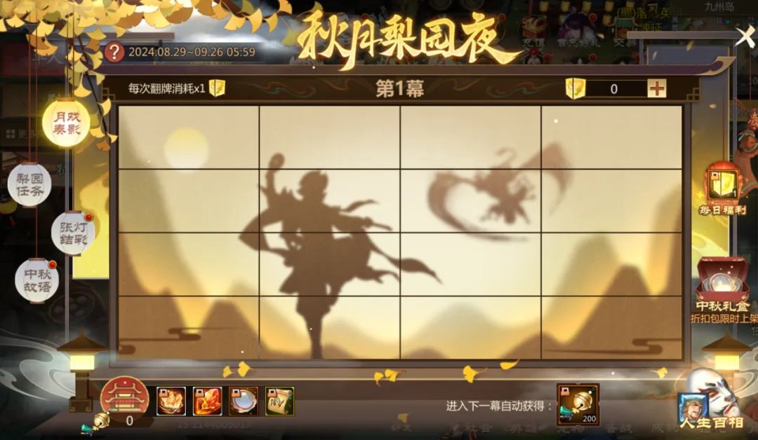 【月戏奏影】界面右下方还有中秋礼包限时上架,超低价福利机不可失!