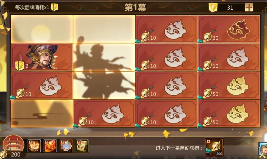 当翻到下一层入口时,将获得本幕奖励200桂花铃,并前往下一幕。
