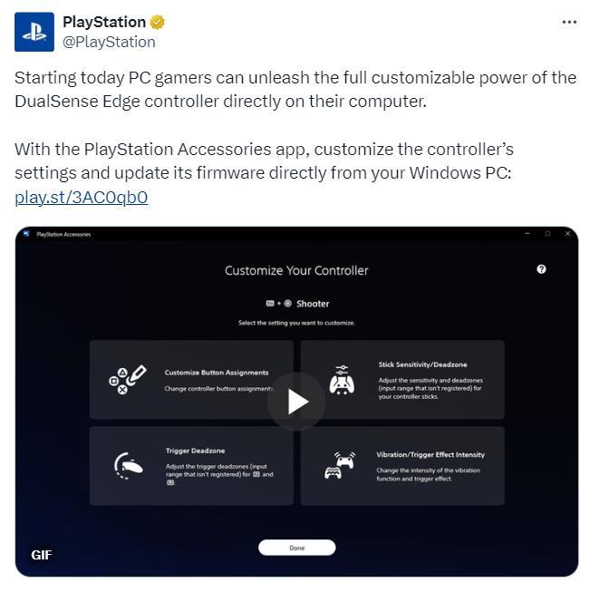 8月27日,索尼发布了PS5 DualSense手柄的PC版应用程序“PlayStation Accessories”,该程序可以为PC上使用的DualSense手柄提供兼容支持,并且可以在没有PS5的情况下为手柄更新固件或自定义按键配置,该应用程序支持普通DualSense手柄和精英DualSense手柄,需要Win10以上的操作系统。