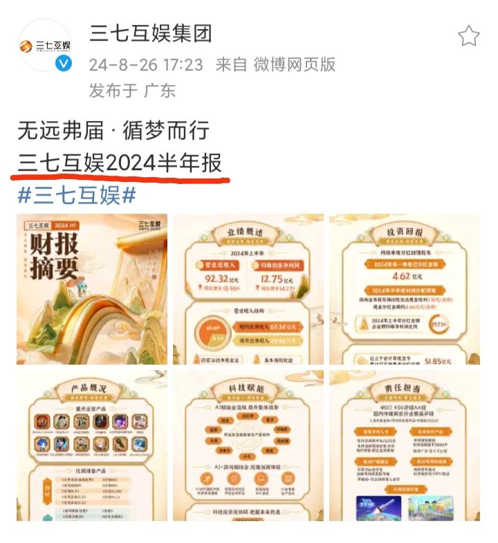8/26号下午,三七互娱官方发布了2024年上半年财报❗❗❗