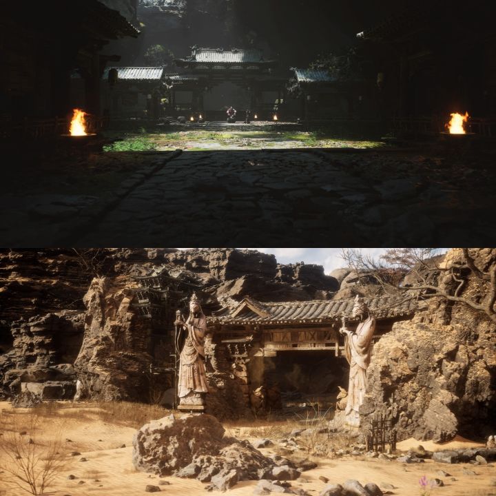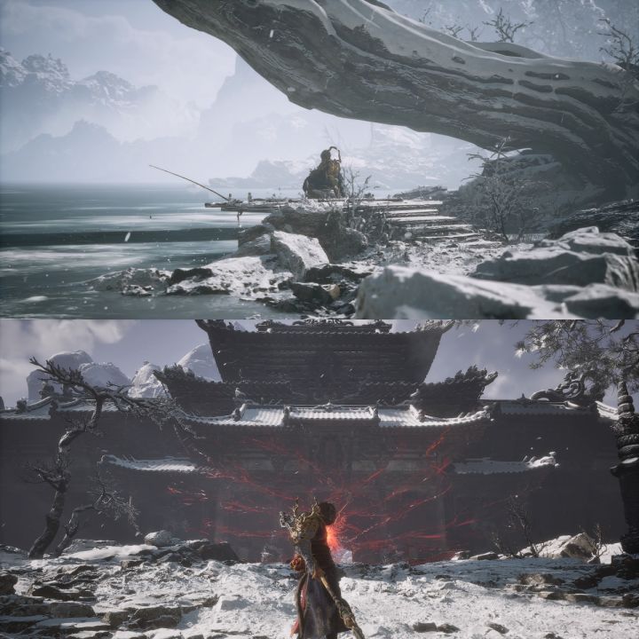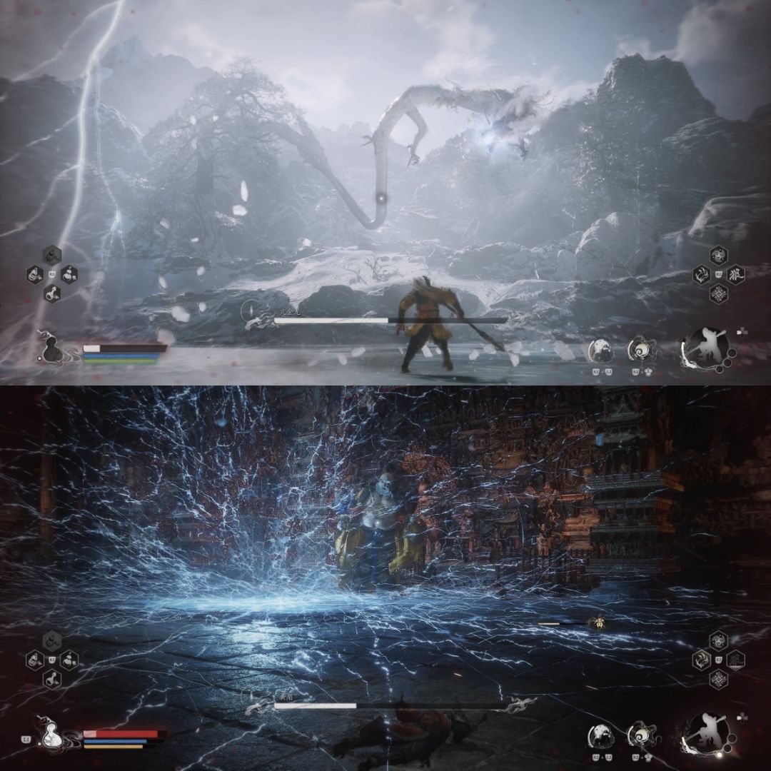 以我个人体验来说,《黑神话:悟空》最大的加分项毫无疑问来自于它与身俱来的文化亲和力,无论是地图美术设计,还是剧本台词与人物塑造,这部作品带给我的体验绝对可称独一无二。而地图设计虽有缺憾,却依然不乏惊喜。BOSS战的演出出色且震撼,甚至有部分时候让我多少回忆起了《最终幻想16》那业界顶尖、天崩地裂式的华丽表演。