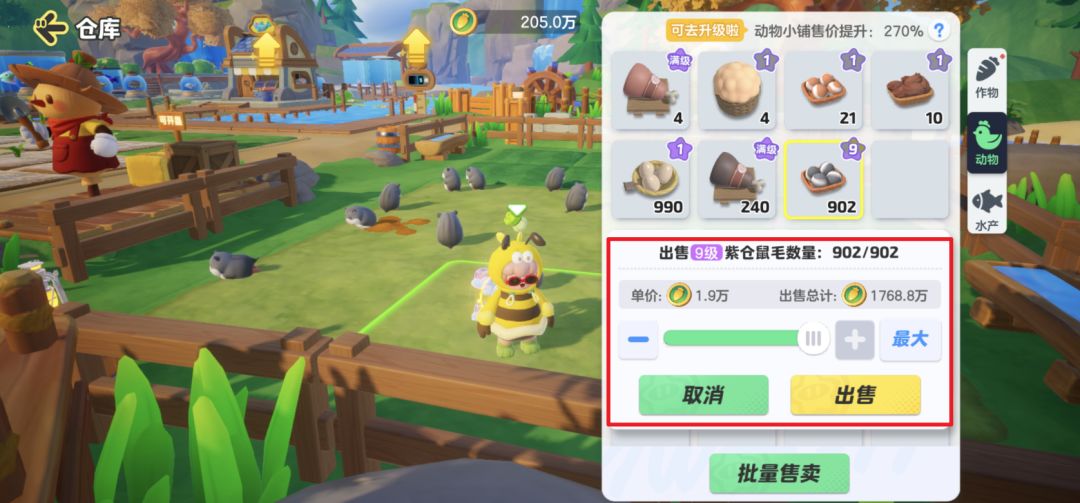PS. 牧场这边最好不要“雨露均沾”地什么都养,否则这样动物升级的速度很慢,售价提升得也会很慢,尽可能集中地养1-2种动物会效益最大化哦~