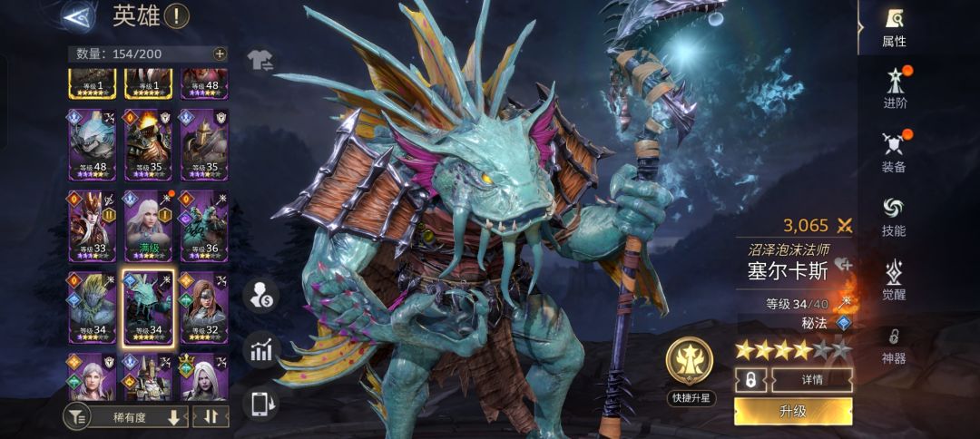 英雄的培养分为升级(英雄,技能,普攻,决战技,武器装备,神器),进阶,升星,技能解锁,觉醒。