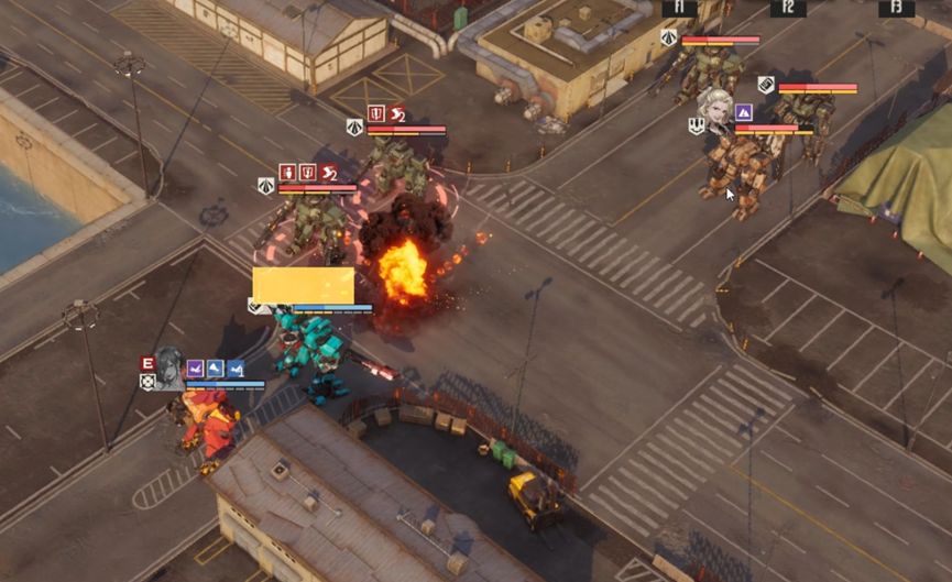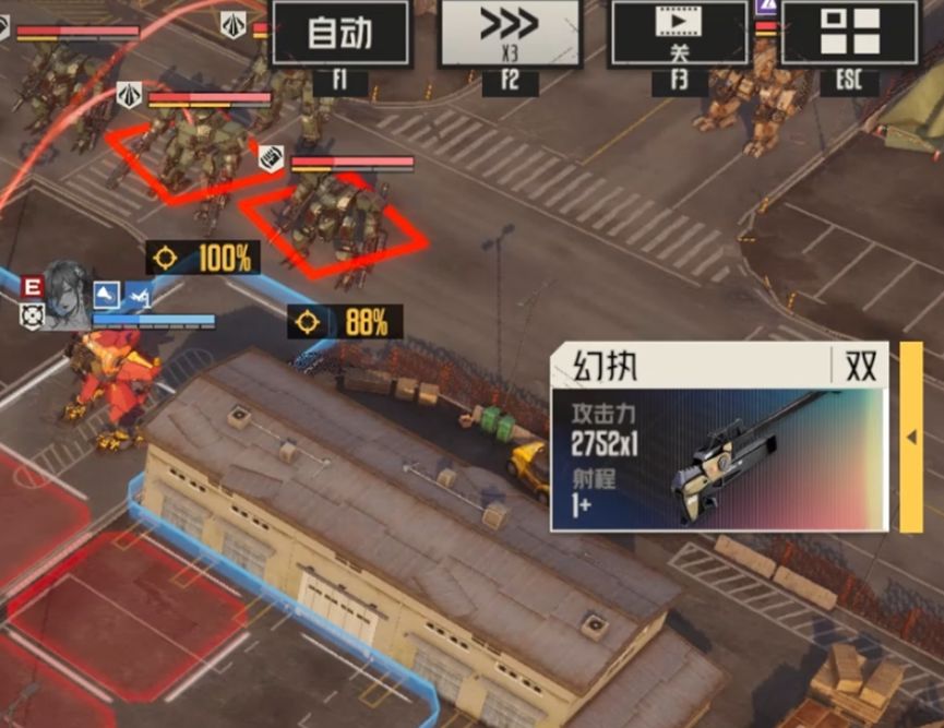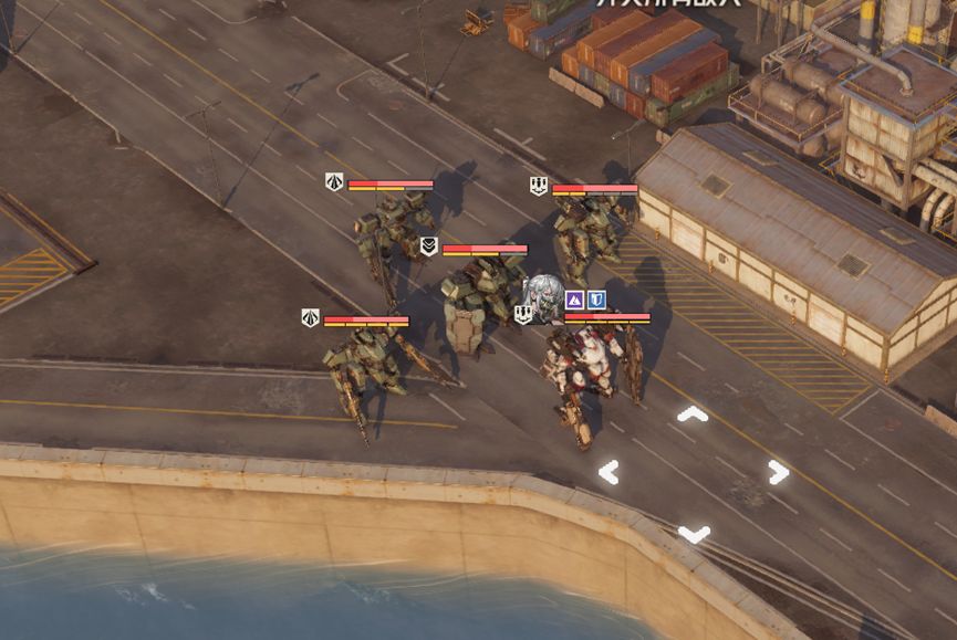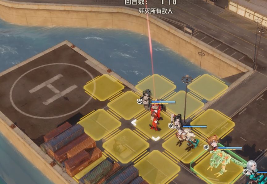 上边敌人位置恰到好处,娜塔莉亚位于下方光标处正好可以架起攻击到米凯拉,在将周围敌人定身的情况下,光标位置也能够规避中间霰弹兵的攻击