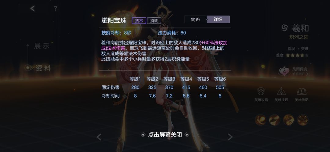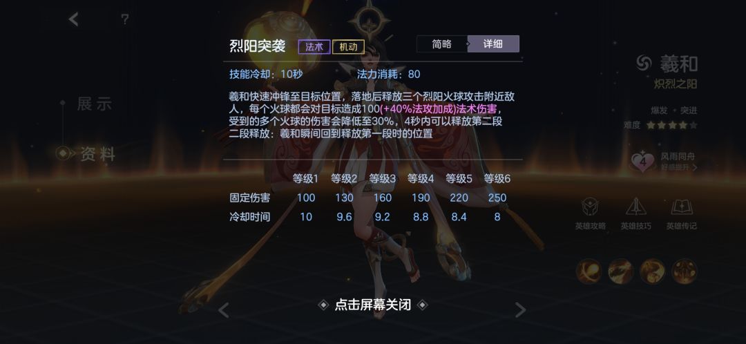 羲和在经过多版本加强后伤害能力有了显著的提升,其较强的灵活性加上较强的伤害能力使其在对局中有着不俗的表现能力。无奈自身缺乏留人手段以及较高的输出风险似乎又给了不小的限制。整体强度个人觉得不低,小伙伴们可以尝试一二。