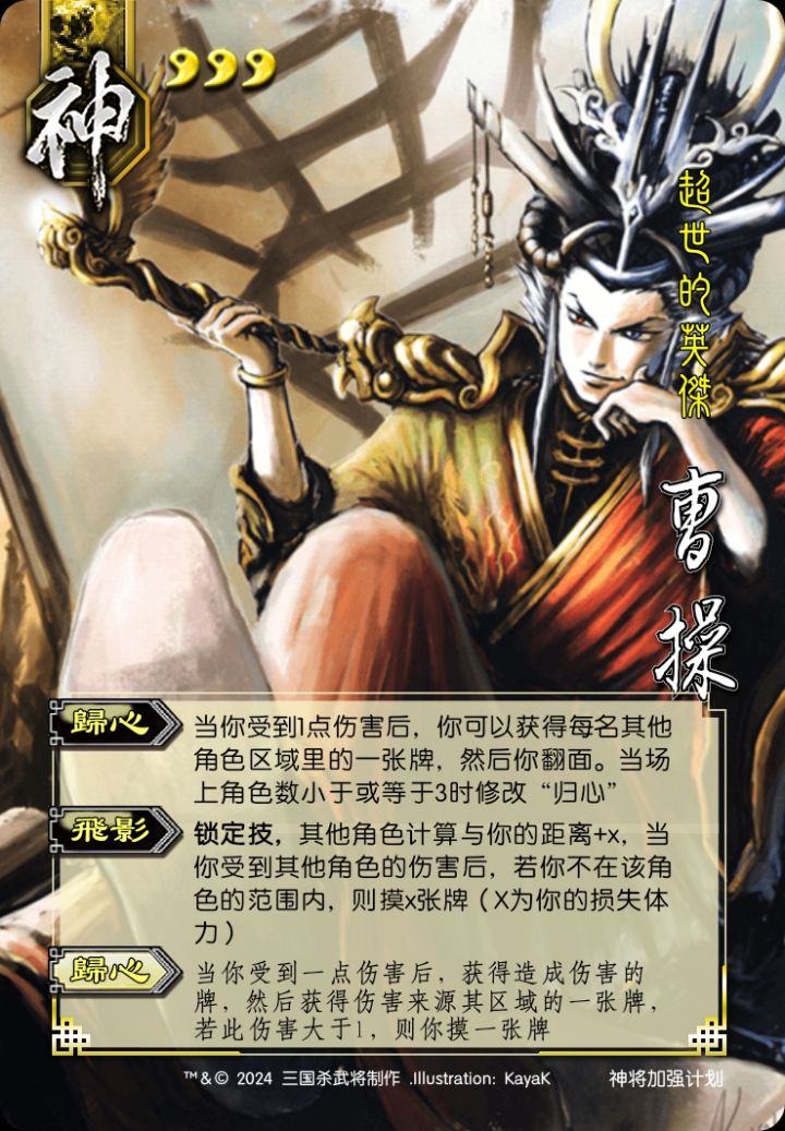 曹操:归心在人少的时候就是个负面技能,收益不如界奸雄,所以我设计了归心的修改版本(反馈加奸雄
