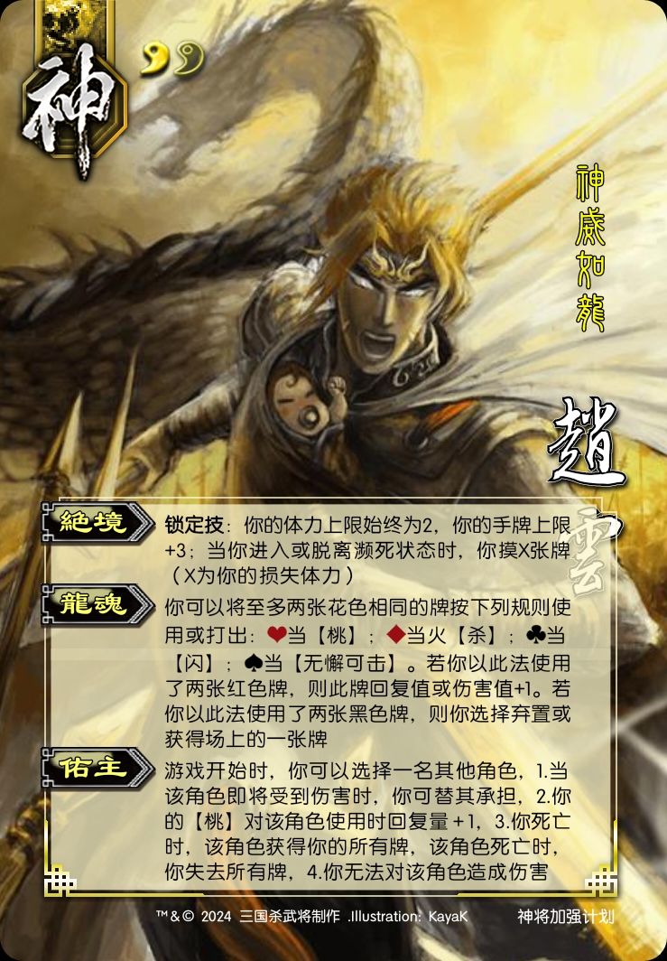 赵云:七进七出的时候又不是他一个人,还带了一个刘禅呢,所以加了个佑主技能,然后为了体现绝境把体力值改成了一(小熊一刀砍死