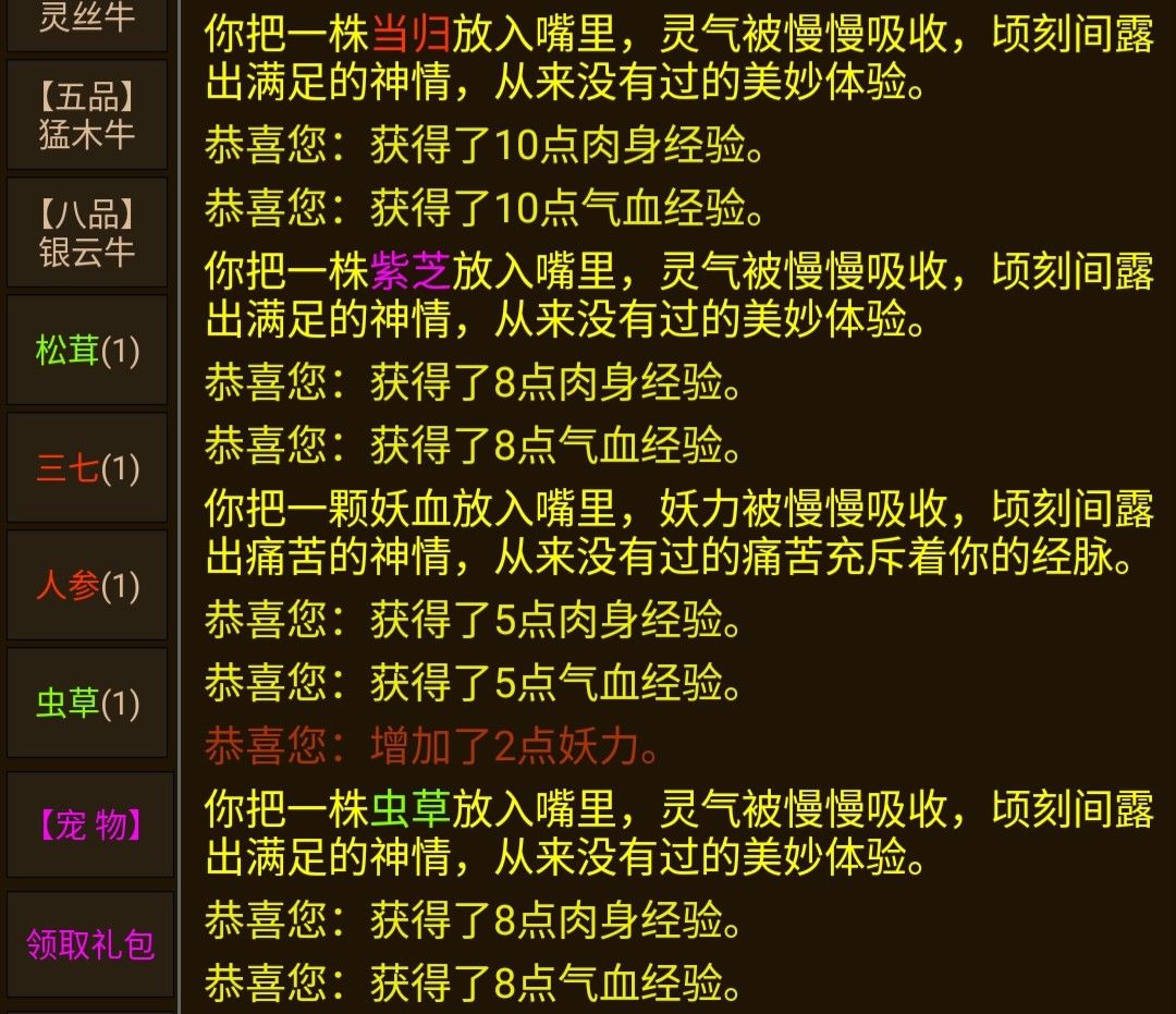 妖血、妖丹(提高肉身经验)