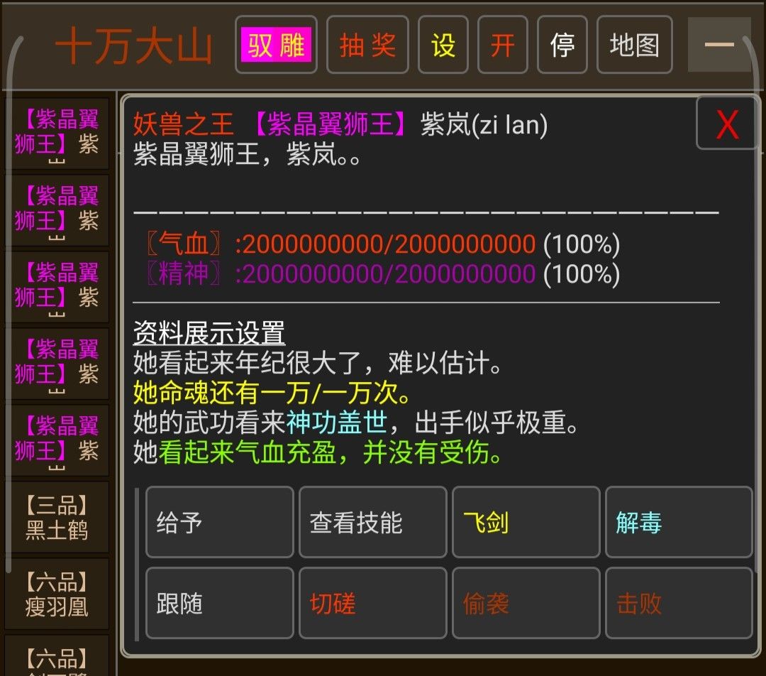 PS:1.十万大山的怪不会破长生,切记有长生buff的时候去;