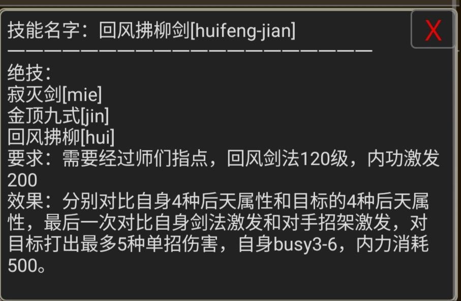 - 武学----回风拂柳剑(剑法、五连击、拜师峨眉获得、推荐指数⭐⭐⭐⭐⭐)