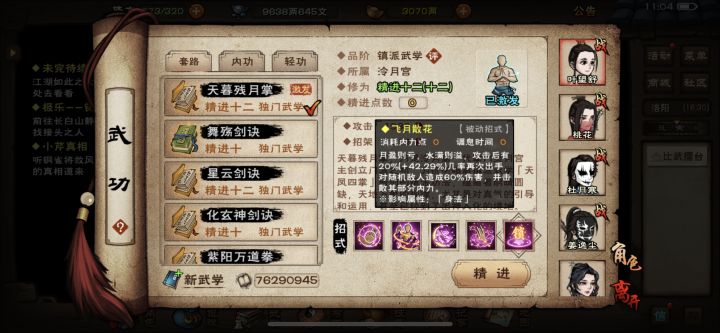 一更新就去武道试效果了,游走这个挺好的,以前的妹妹拳鸡肋又无耻,只靠缴械恶心人,现在游走提升了点输出,而且如果对手有迟滞效果,普攻和游走打中都是必中封脉。游走这个对面只剩一个人也能触发。