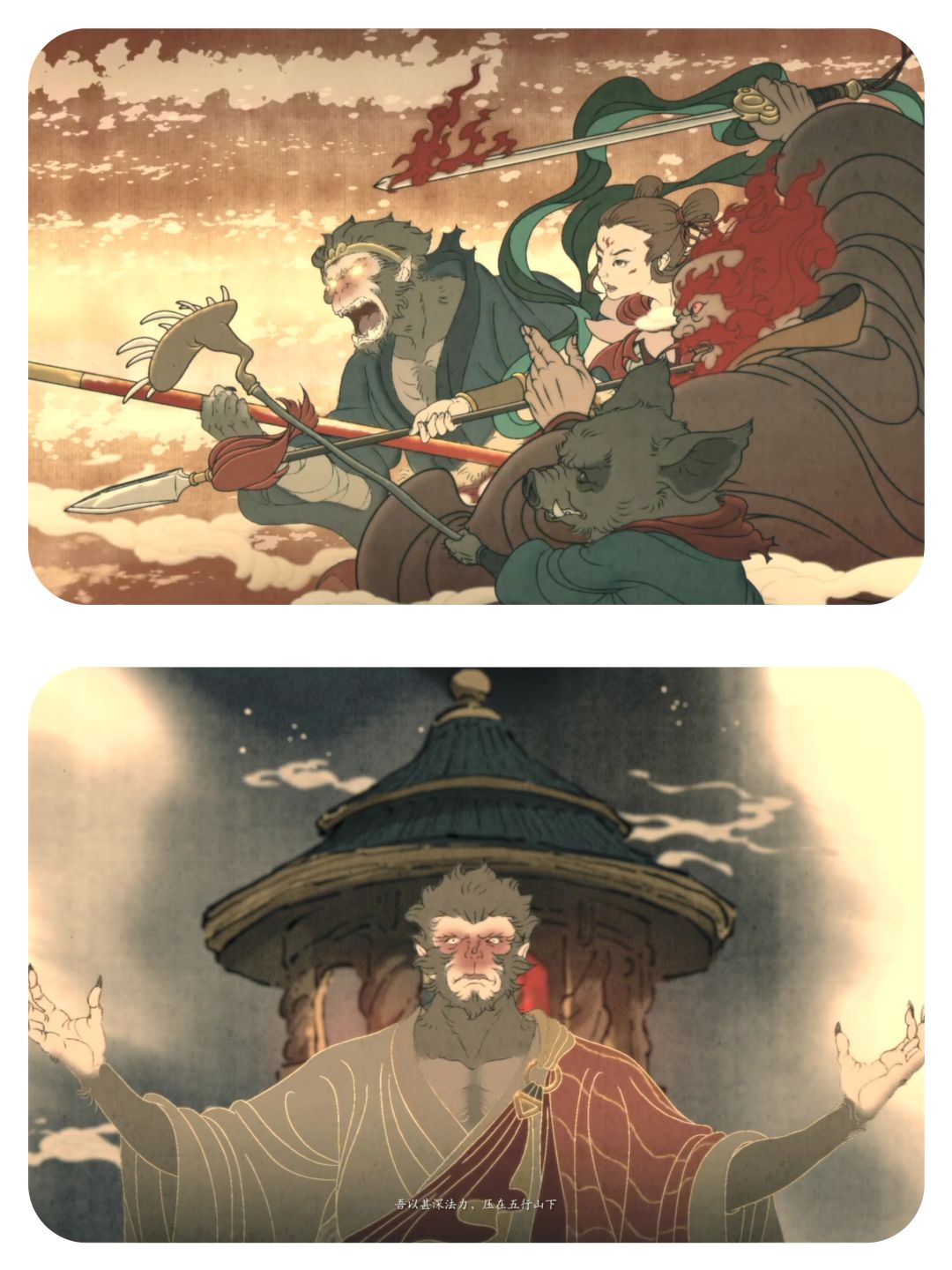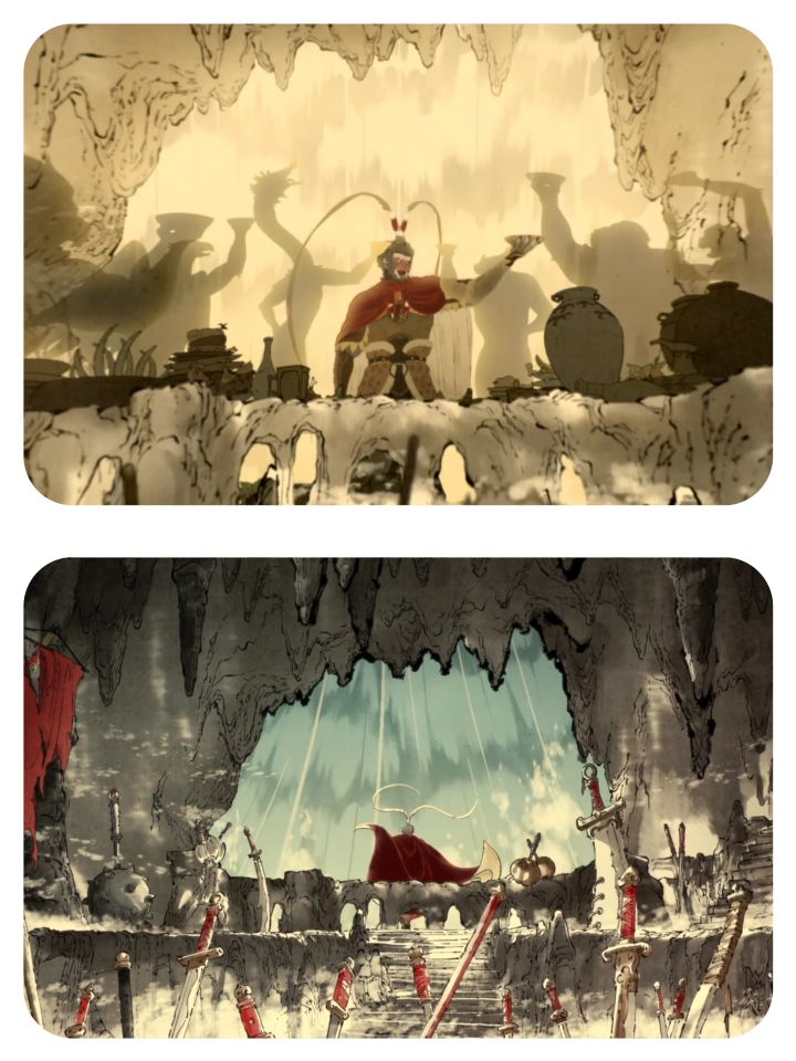 而结局中的动画,几乎是贯彻了取经之路。即便历尽艰辛,即便己身成佛,终究是逃不过这天说的命运。