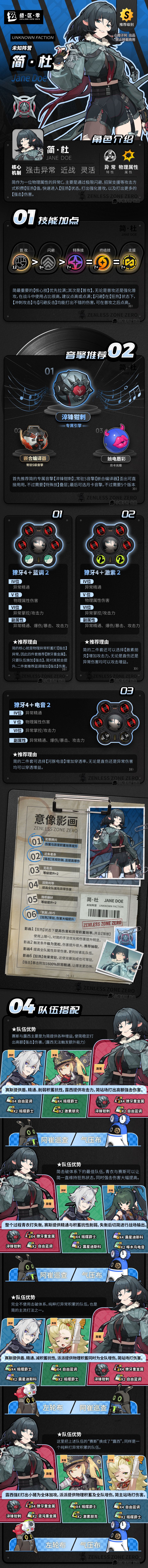 先让我们来看看下面的一图流攻略吧,一图流介绍了简的技能优先级、音擎推荐、驱动盘推荐、关键影画以及队伍搭配五大版块,希望对想入手的小伙伴有所帮助。