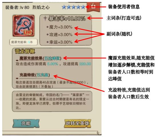 魔源充能效果、充盈特效需要对装备进行充能后方可生效。