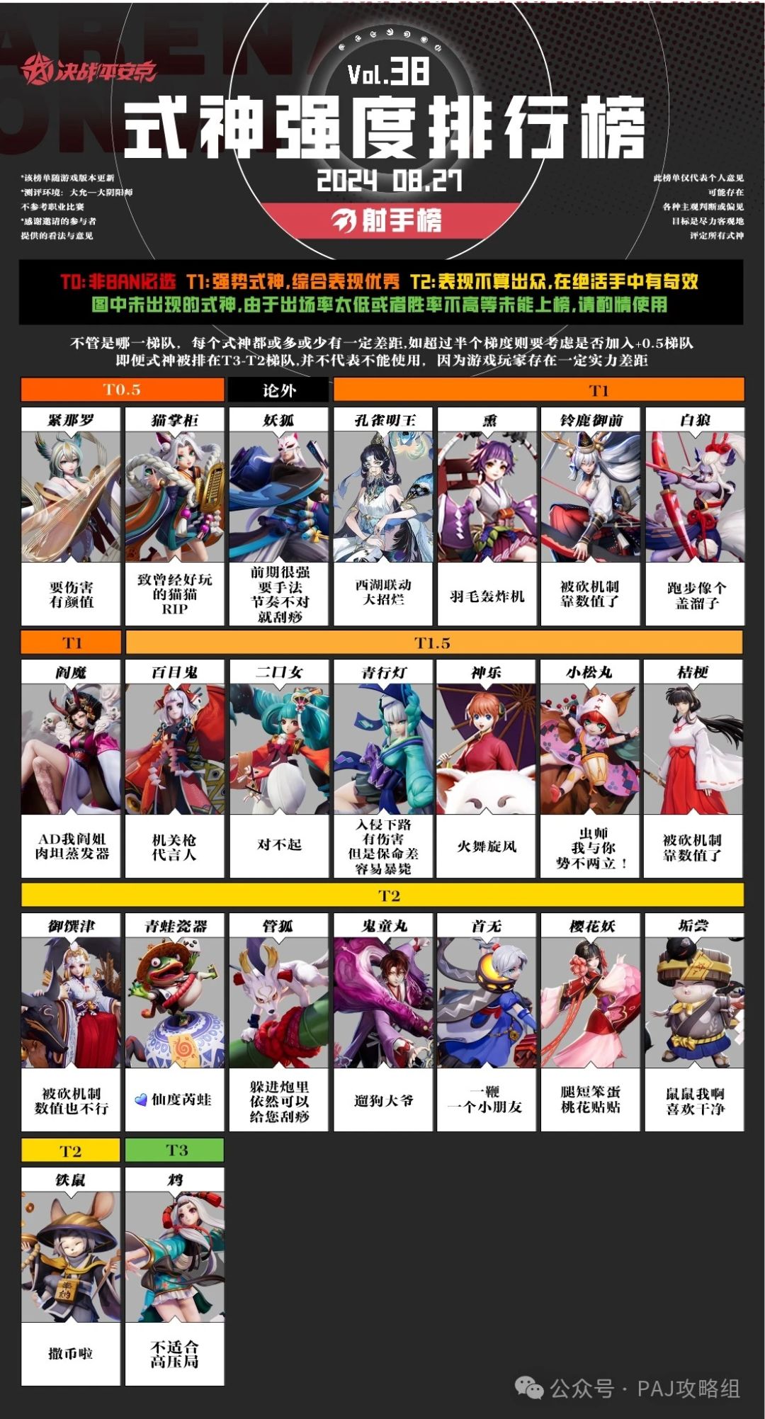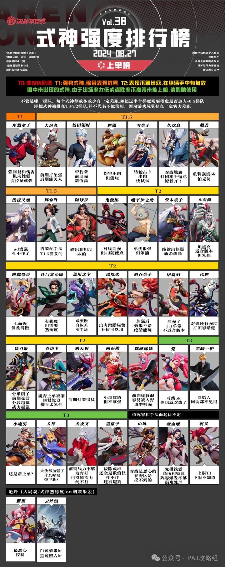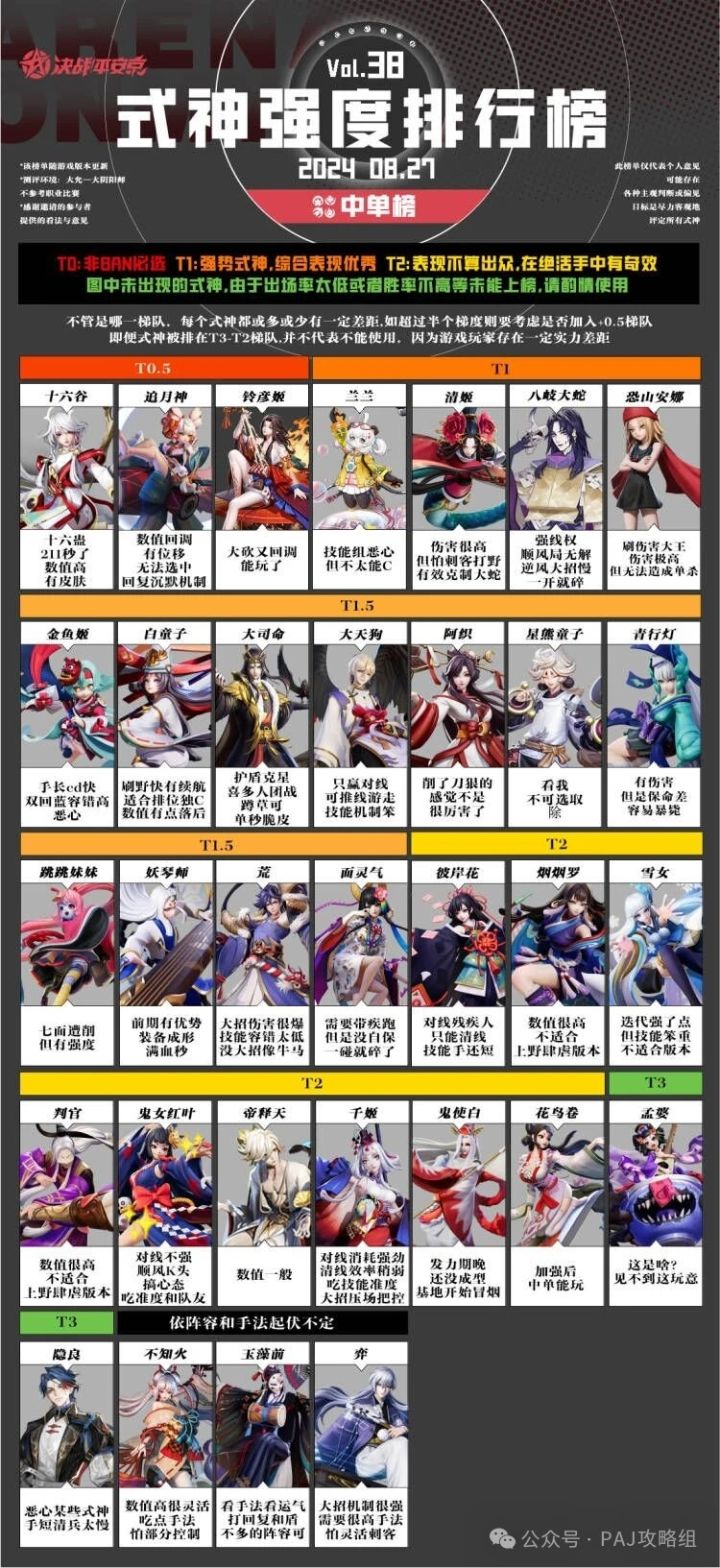 不管是T0 T1 T2也好,每个式神都或多或少有一点差距