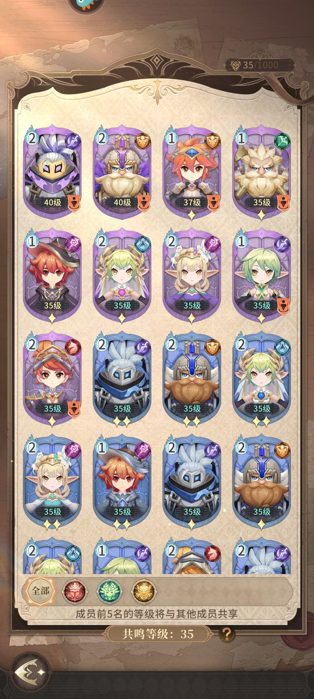 成员共享等级:5名主力成员中的最低等级共享剩余成员等级,并且可以自由重置,反复调整。