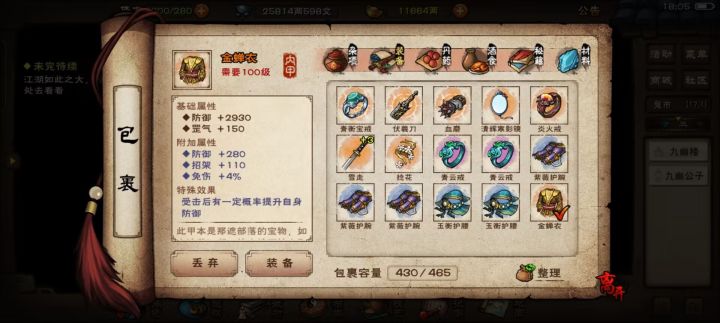 一番推辞后宝甲到手,获得1w阅历,5声望,5两银子,金蝉甲。