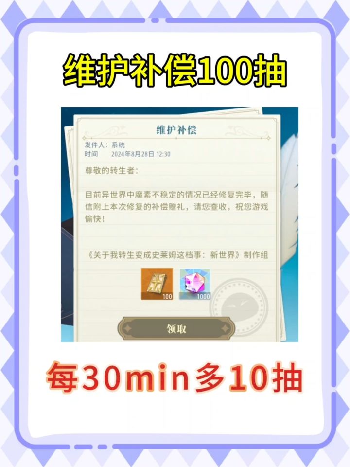 ✨每修复30min=再送10抽