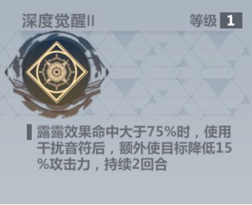 - 从数值上看,这个记忆体首先提供效果命中,可以更容易的达成露露天赋[深度觉醒II]效果命中大于75%的生效要求。而[深度觉醒II]激活后可以让露露在使用[干扰音符]时降低敌方攻击力。