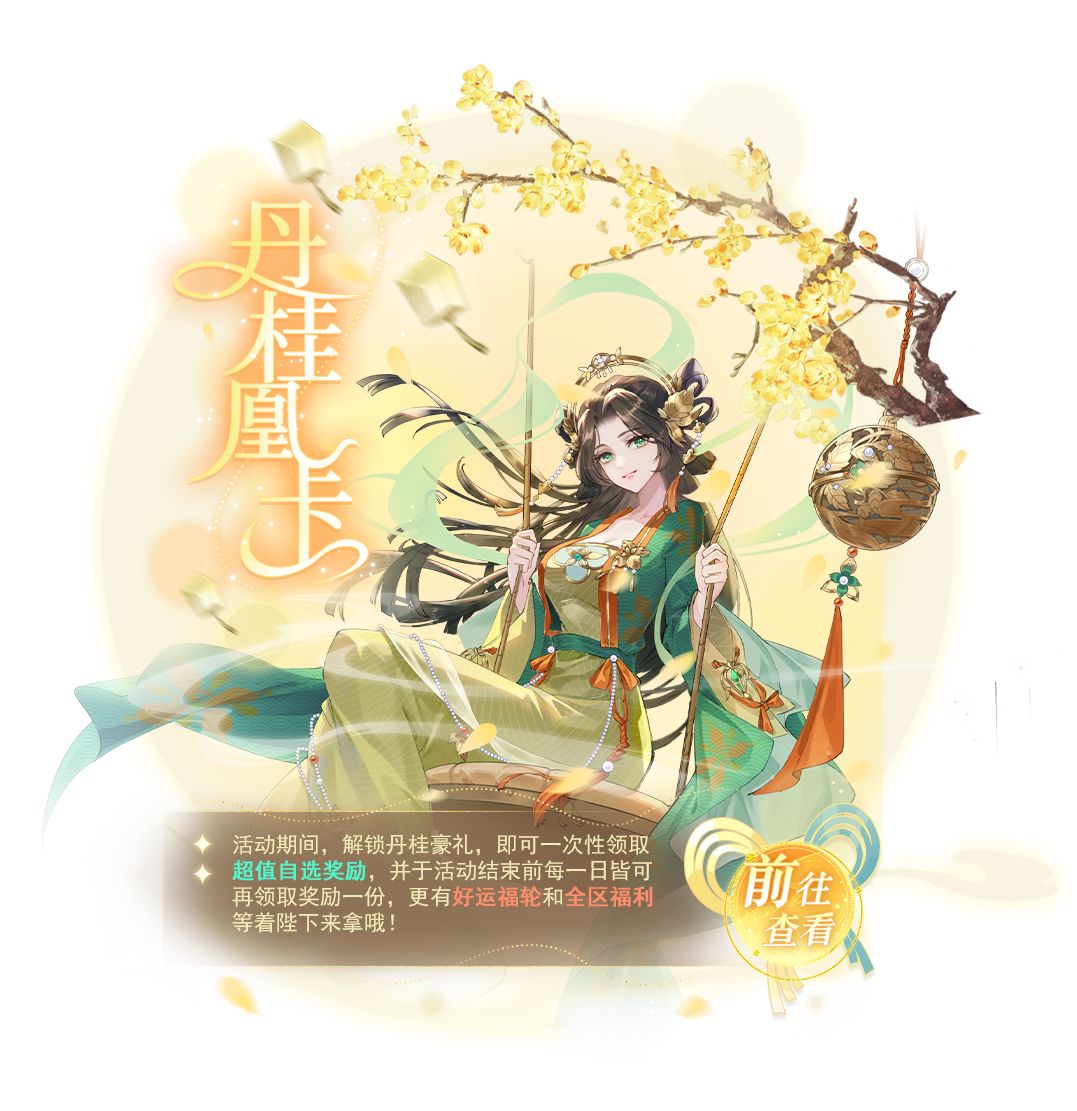 5、若购买了丹桂凰卡当天未领取奖励,则当天的23:59:59通过邮件代发奖励,邮件为固定奖励道具:振兴羁绊、桂花方糕、时空装扮多选一礼盒、时空之尘、逐梦之尘、心愿结