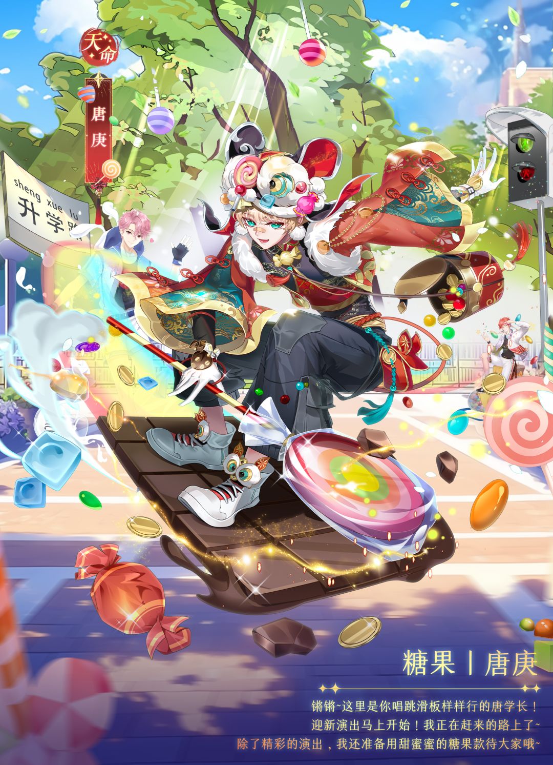 1、8月30日00:00至9月5日23:59期间,参与“上凰升学宴”活动,即可有机会获得糖果血统天命侍从唐庚及其信物“黑巧板”