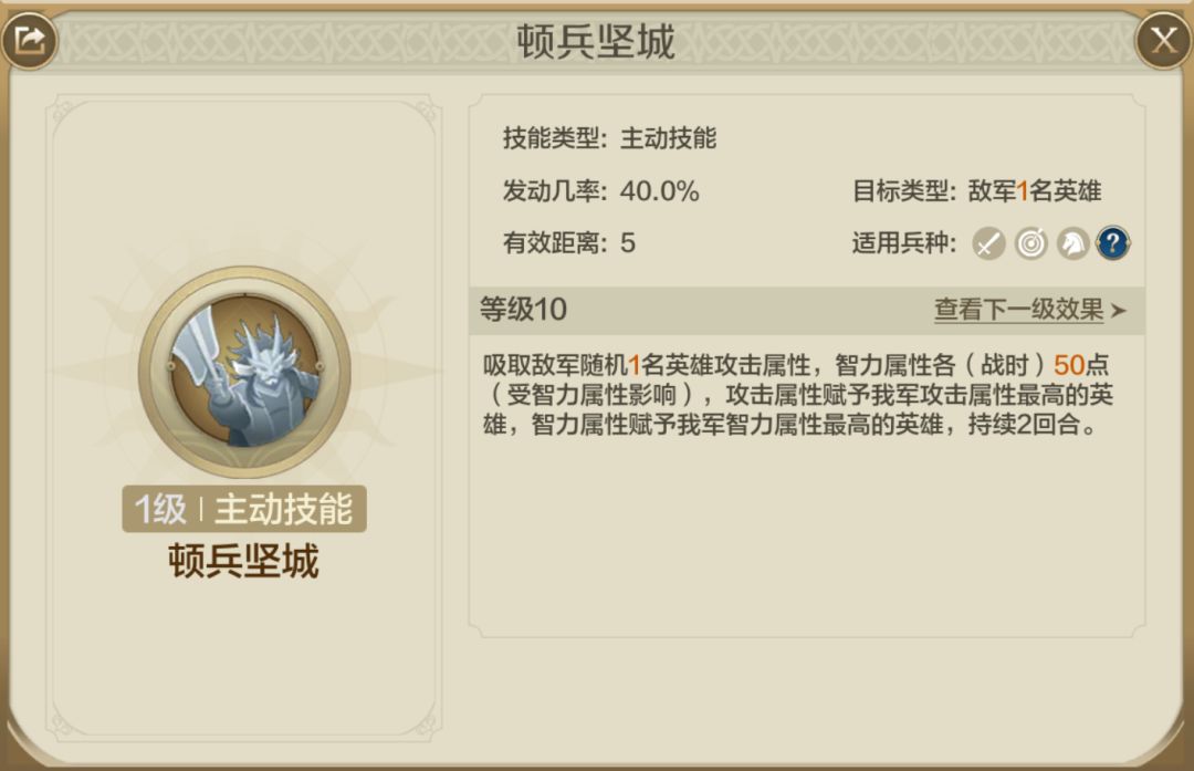 这边技能备选有很多,很多能够减少敌方属性的技能比如紫卡的【擒王】,【坚甲利兵】都可以替换携带,本身这个阵容还是偏向娱乐,大家可以有很多变动。